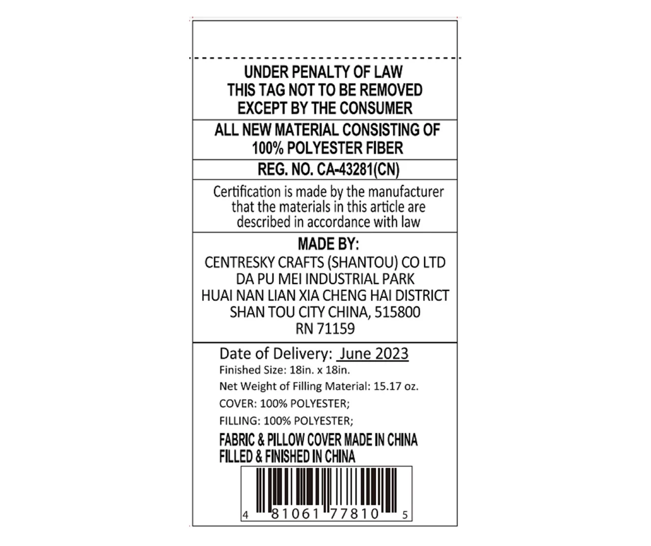 - Material: COVER: 100% POLYESTER;FILLING: 100% POLYESTER;
