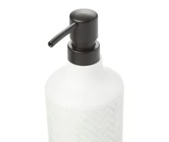 This toothbrush holder from Broyhill is generously proportioned, with sections for toothbrushes and toothpaste. A barrel shape in sturdy white polyresin is embossed with a tight black grid, inspired by a wire basket. The dual openings accommodate multiple toothbrushes so family members and guests will be able to keep theirs handy.