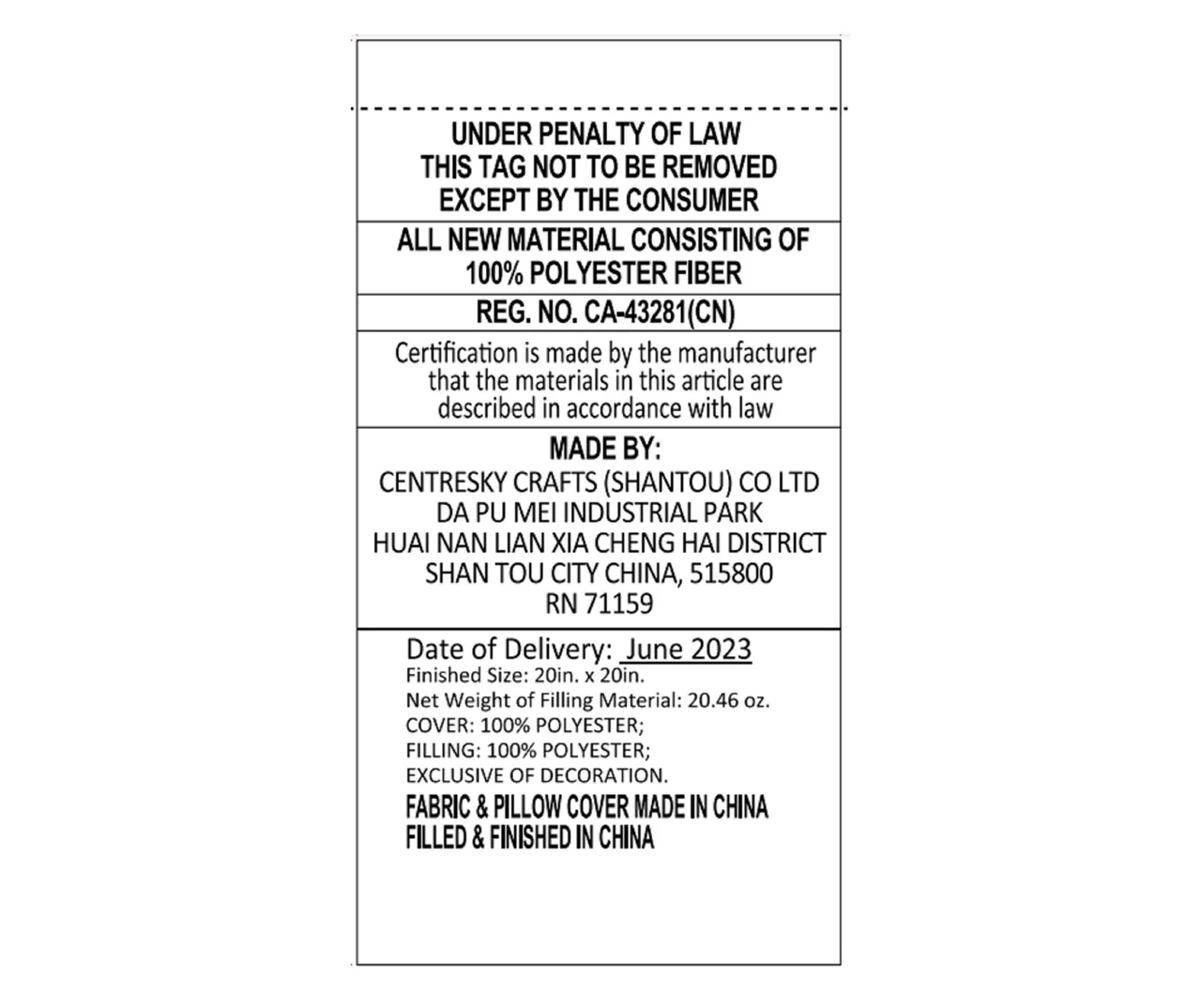 - Material: COVER: 100% POLYESTER;FILLING: 100% POLYESTER;EXCLUSIVE OF DECORATION.